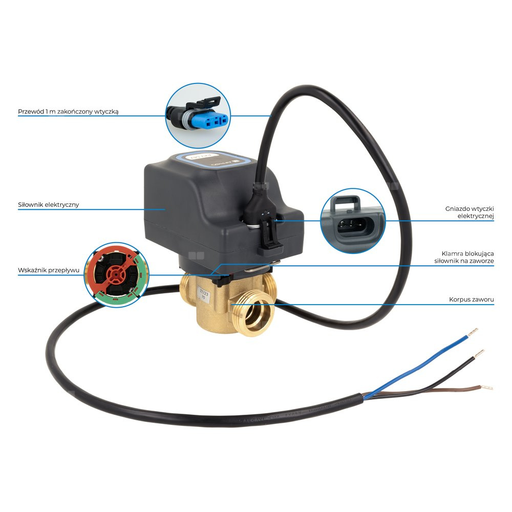 - W połączeniu ze sterownikiem 2-punktowym (np. termostatem TC2) automatyzuje pracę instalacji.