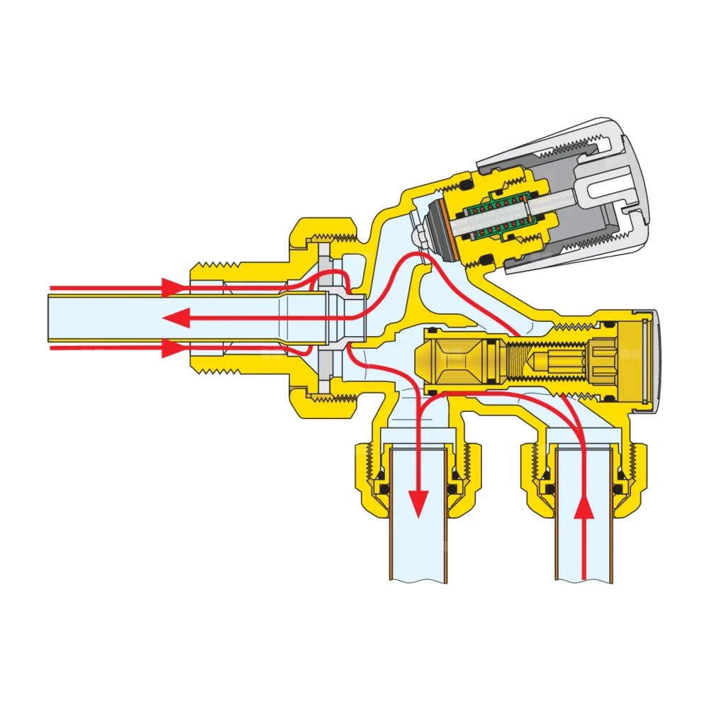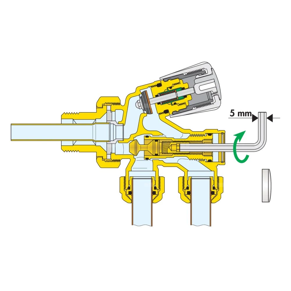 Grzejnikowy zawór termostatyczny z pokrętłem przystosowany do montażu głowic termostatycznych, elektronicznych i siłowników termoelektrycznych Ustawienie fabryczne dla instalacji jednorurowych, możliwość przystosowania dla instalacji dwururowych. podłączenie grzejnika: 23 p. 1,5, wlot, prawy, Podłączenie do złączek Caleffi. podłącznie rury: G 1" A (ISO 228-1) GZ, wylot. Maksymalne ciśnienie pracy: 10 bar. Zakres temperatury medium: 5–100 °C. Długość sondy: 30 cm. Rozstaw przyłączy głównych: 40 mm. Wykończenie: chromowane. Kv jednorurowe: 2,0 m³/h. Kv dwururowe: 1,10 m³/h. Materiał: mosiądz.