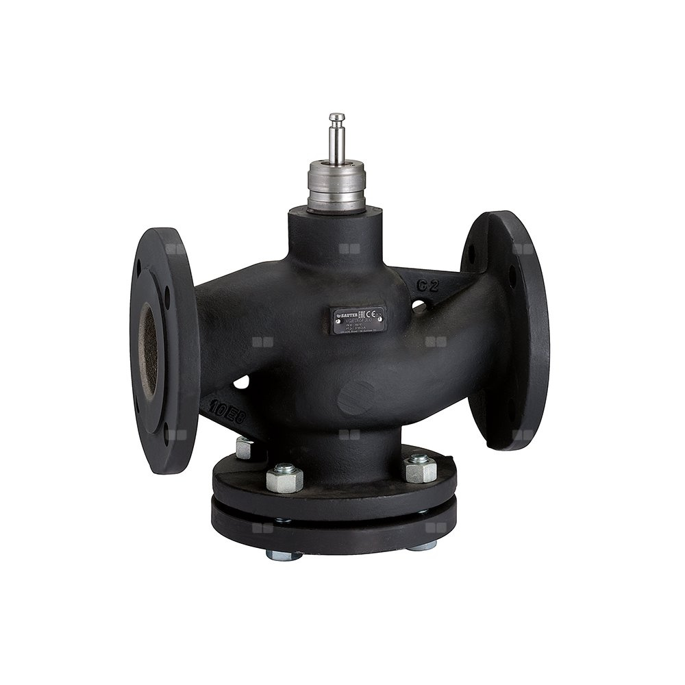 Dwudrożny/trójdrożny zawór regulacyjny, kołnierzowy Współpraca z przeciwkołnierzami EN 1092-1. Charakterystyka stałoprocentowa (dwudrożny). Charakterystyka stałoprocentowa/liniowa (trójdrożny). Zawór dwudrożny może zostać przekształcony do wersji trójdrożnej poprzez usunięcie elementu zaślepiającego by-pass. Przyłącze: DN 125 (EN 1092-1) PN 16. Maksymalne ciśnienie pracy: 16 bar. Zakres temperatury medium: 0–100 °C. PN (Ciśnienie nominalne): PN 16. Kv: 220 m³/h. Materiał: żeliwo.