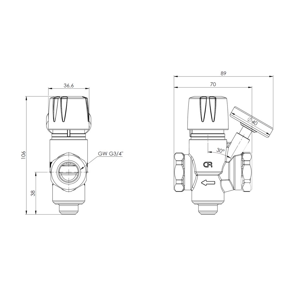 - Umożliwia nastawę temperatury wody w pionie / gałęzi w przedziale 40÷65°C.