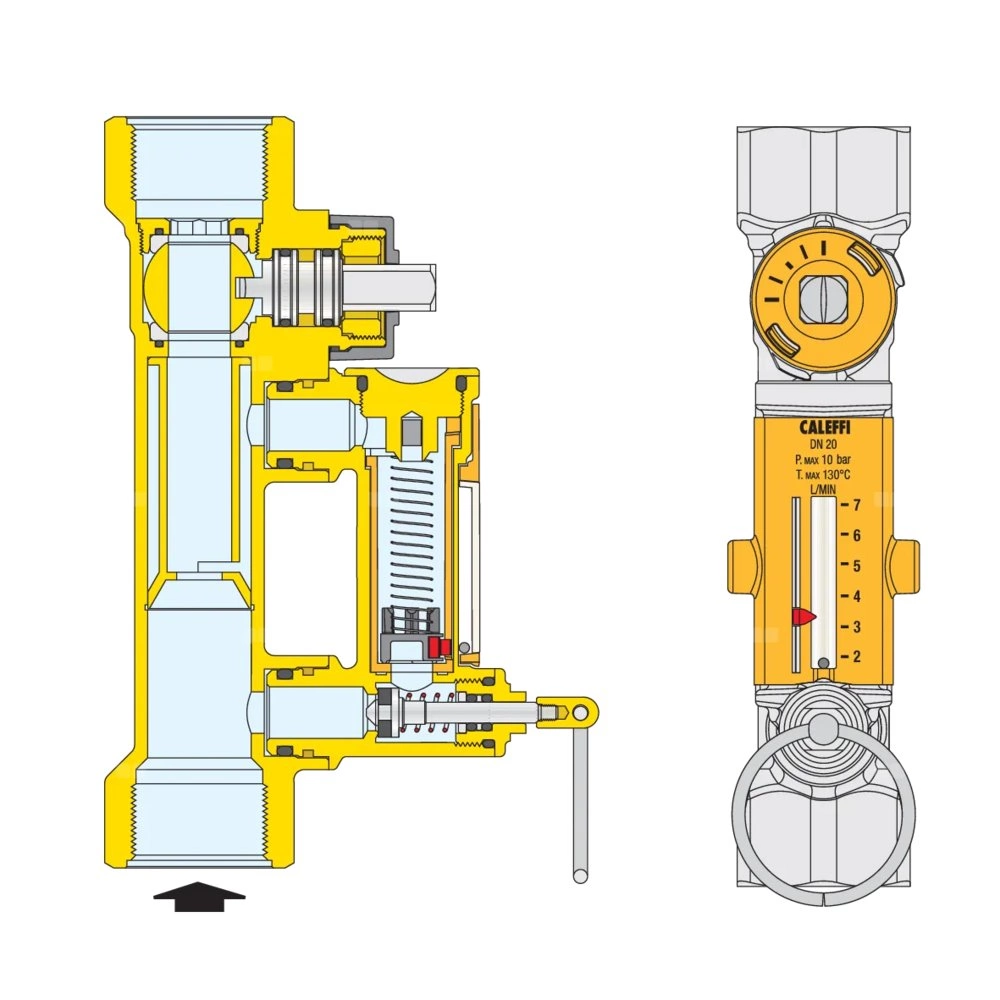Mosiężny korpus zaworu i przepływomierz.