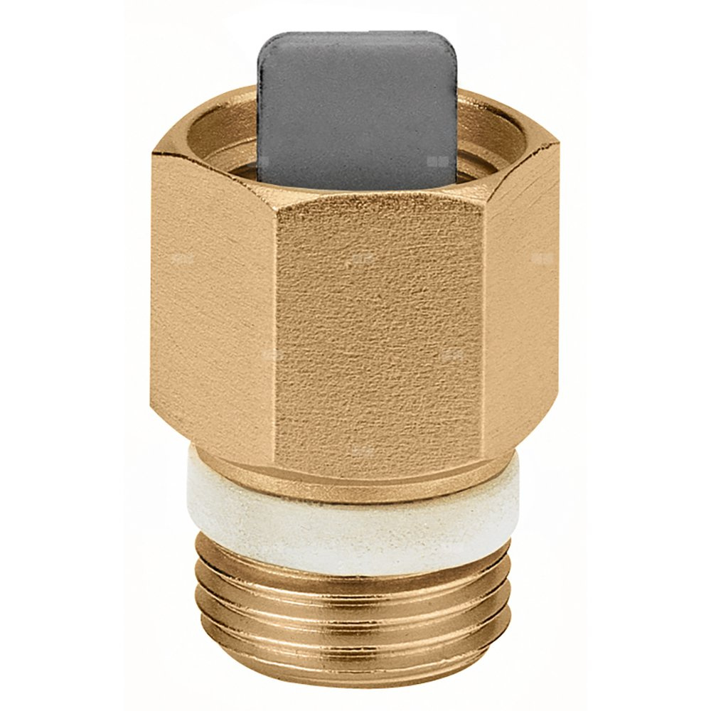 Automatyczny zawór stopowy. Przyłącze: G 1/4" (ISO 228-1) GW, wlot. Przyłącze: G 3/8" A (ISO 228-1) GZ, wylot. Maksymalne ciśnienie pracy: 10 bar. Zakres temperatury medium: 0–110 °C. Materiał: mosiądz.