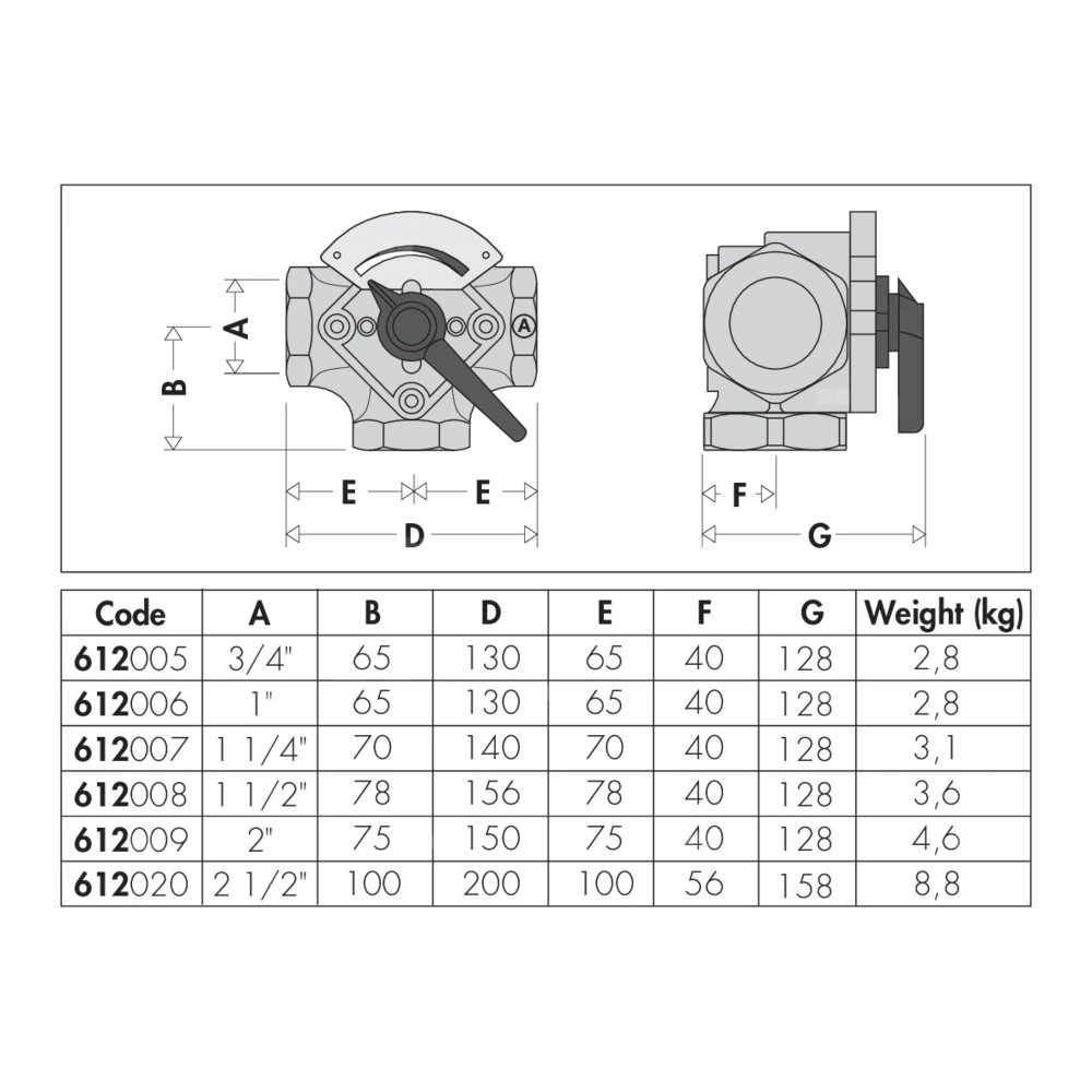 Zawór trójdrogowy mieszający. Przyłącza gwintowane Ustawienie fabryczne: zasilanie ze źródła ciepła z prawej strony. Do stosowania w ciężkich warunkach. Przyłącze: G 3/4" (ISO 228-1) GW. Maksymalne ciśnienie pracy: 6 bar. Zakres temperatury medium: 2–110 °C. Kv: 7,2 m³/h.