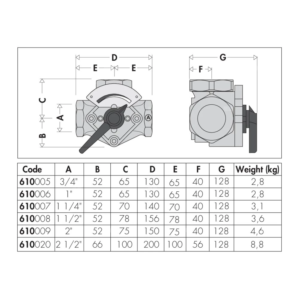 Zawór trójdrogowy mieszający z przepustnicą. Przyłącza gwintowane Ustawienie fabryczne: zasilanie ze źródła ciepła z prawej strony. Do stosowania w ciężkich warunkach. Przyłącze: G 1 1/4" (ISO 228-1) GW. Maksymalne ciśnienie pracy: 6 bar. Zakres temperatury medium: 2–110 °C. Kv: 16,8 m³/h.