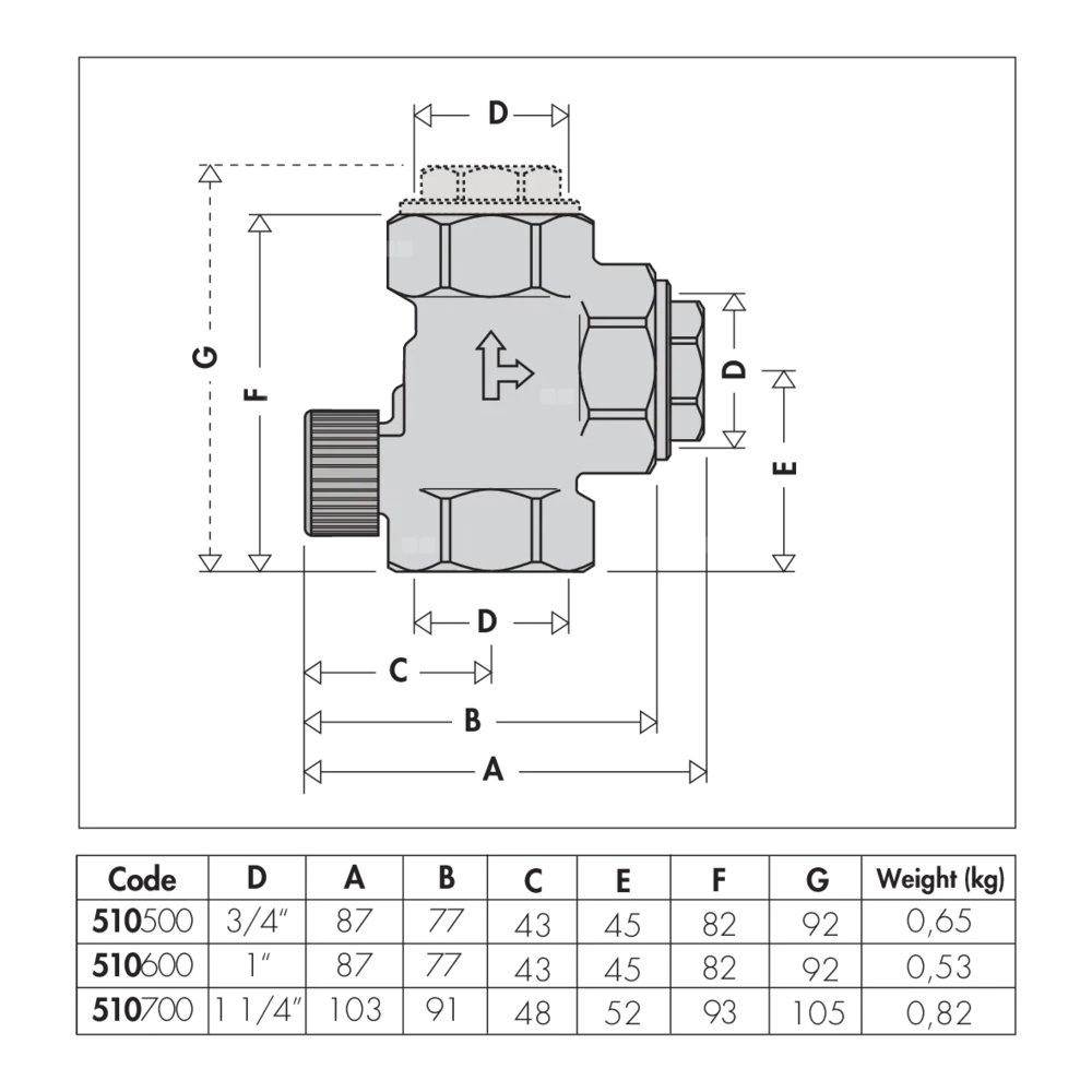 Zawór zwrotny zapobiegający cyrkulacji grawitacyjnej Możliwość instalacji prostej lub kątowej Przyłącze: G 1 1/4" (ISO 228-1) GW. Maksymalne ciśnienie pracy: 10 bar. Zakres temperatury medium: 5–110 °C.