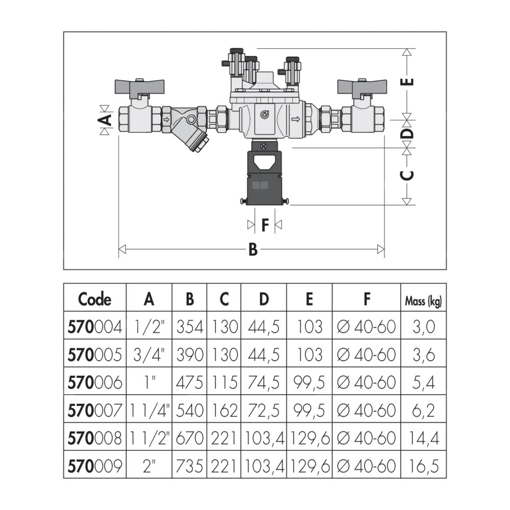 Wstępnie zmontowana grupa, przyłącza z gwintem wewnętrznym, przyłącza gwintowane. Zawiera: -izolator przepływów zwrotnych serii 574; -filtr skośny serii 577; -ręczne zawory odcinające. Przyłącze: G 3/4" (ISO 228-1) GW. Zakres temperatury medium: 0–65 °C. PN (Ciśnienie nominalne): PN 10.
