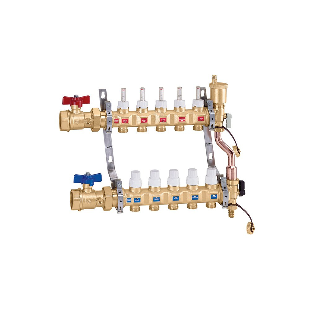 - rozdzielacz zasilający z wbudowanymi przepływomierzami i zaworami równoważącymi natężenie przepływu;
