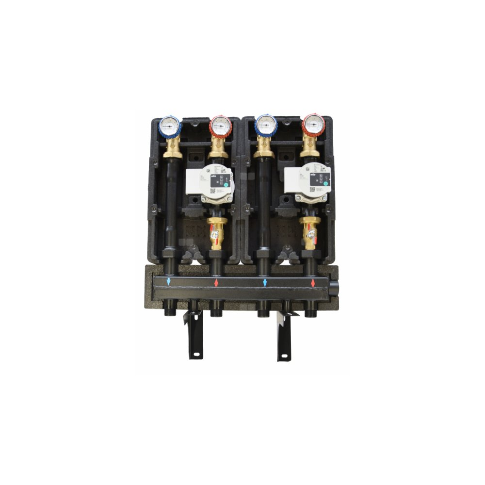 Parametry techniczne: system do 45kW, możliwość podłączenia 2 źródeł ciepła, kvs zaworu termostatycznego 3,4.