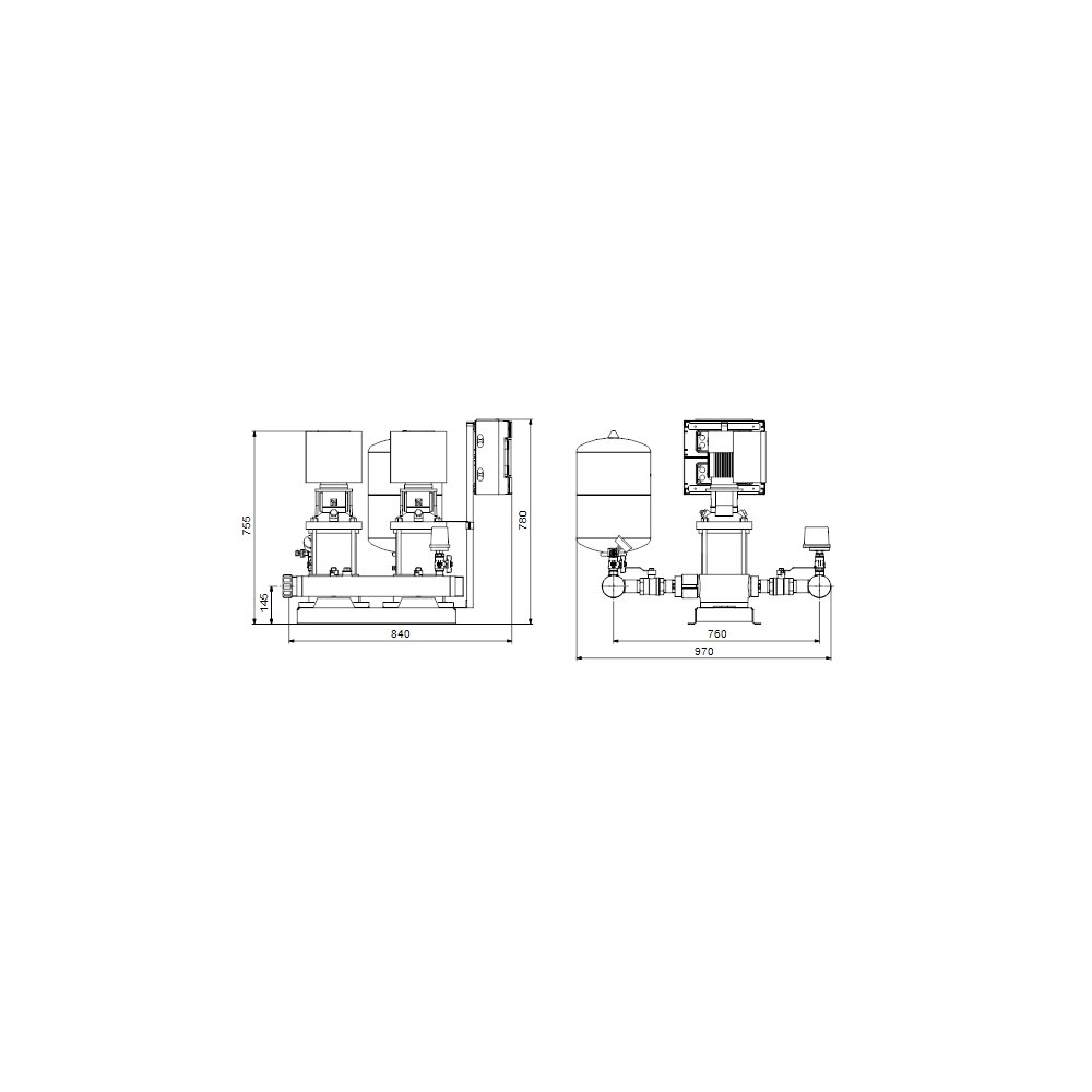 Zestaw składa się z 2 do 4 CRE połączonych równolegle, zamontowanych na wspólnej ramie podstawy i wyposażonych w odpowiednią armaturę.