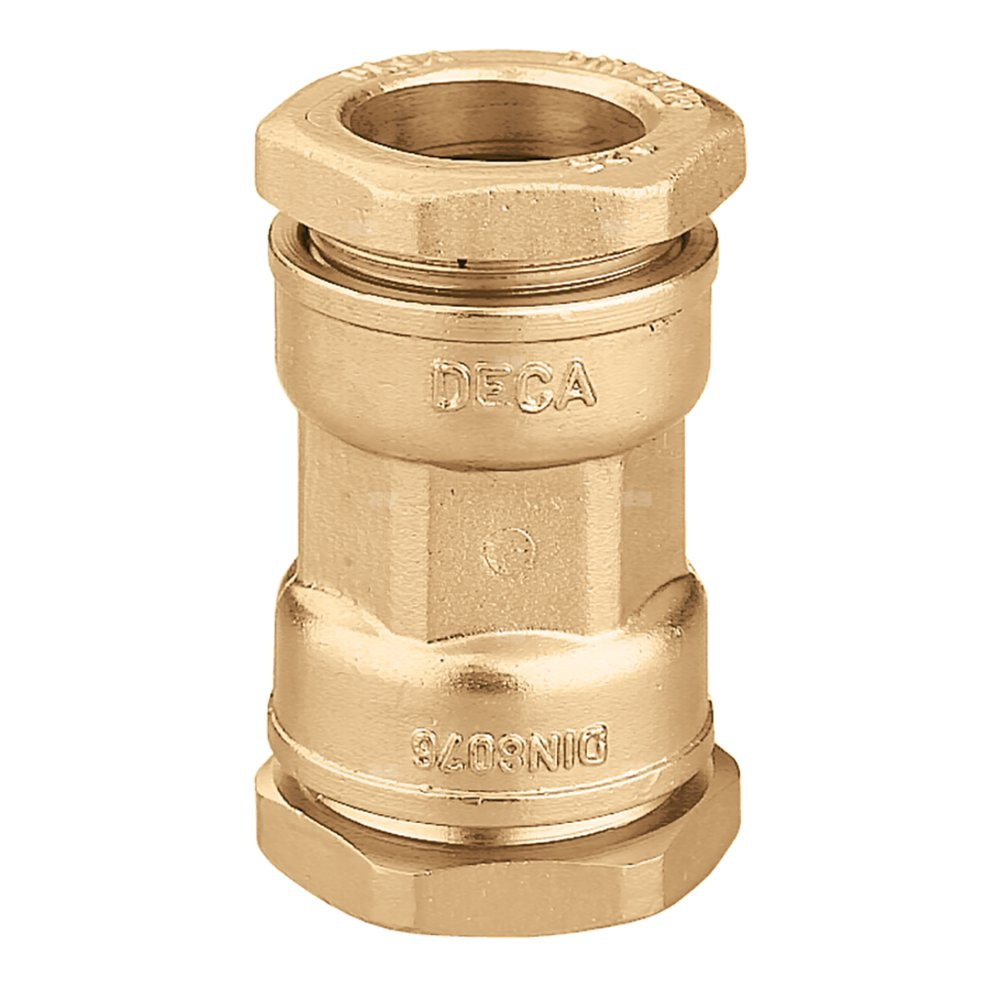 Złączka równoprzelotowa Do rur żelaznych. Przyłącze: Ø 34. Maksymalne ciśnienie pracy: 16 bar. Zakres temperatury medium: 0–40 °C. Materiał: mosiądz.