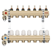 Rozdzielacz do ogrzewania podłogowego FERRO RZP11S 11-obieg. mosiądz GW 1'' x GZ 3/4'' + przepływomierz + termostat